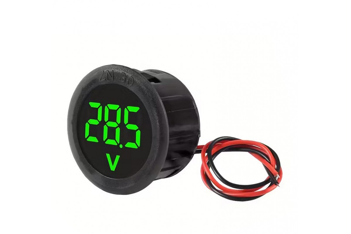 Вольтметр круглый потайной цифровой дисплей, вольтметр, вольтметр цифровой, вольтметр скутер, вольтметр врезной, вольтметр 12в, вольтметр 24в