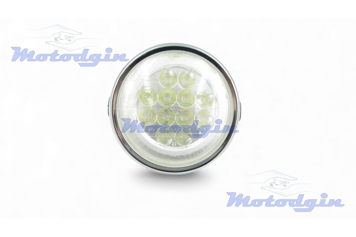 Фара Yamaha YBR125 LED 12 диодов, фара передняя ямаха юбр, круглая фара юбр 125, лед фара юбр