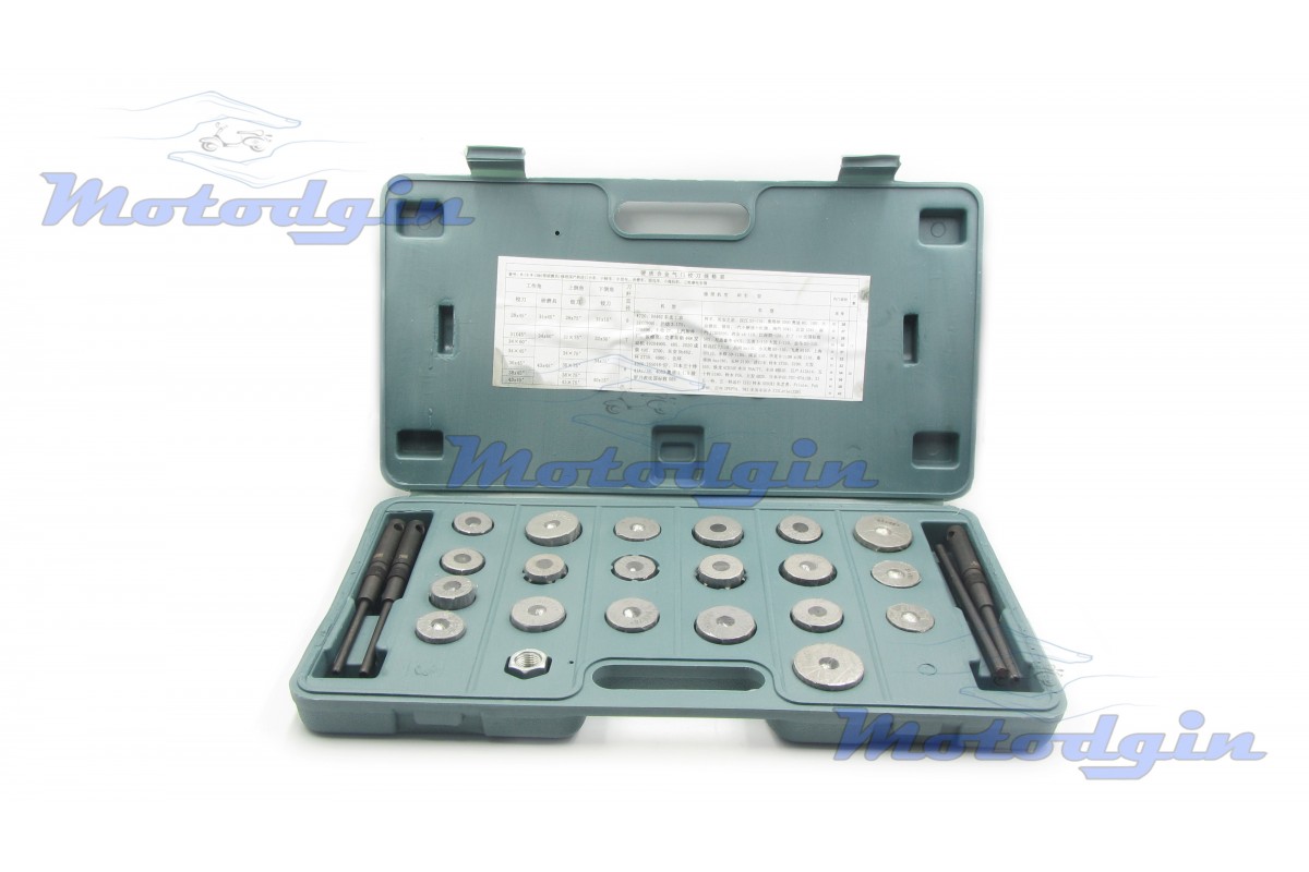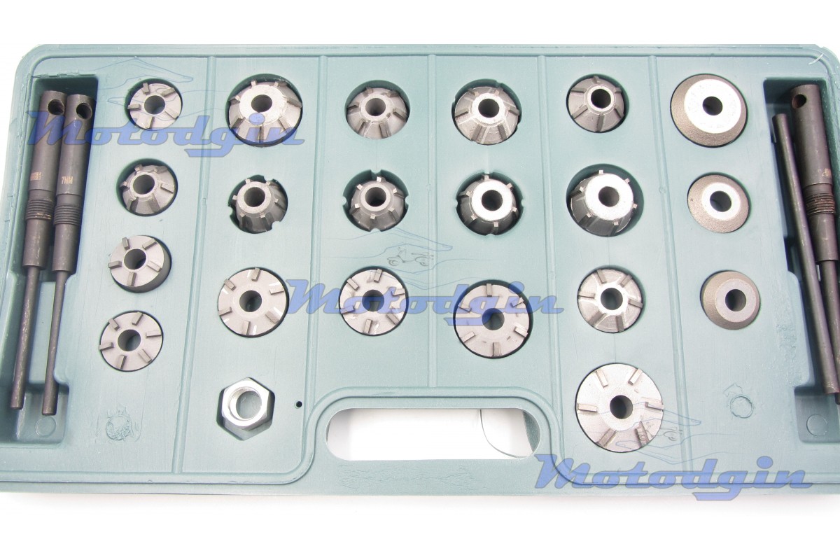 Набор шарошек в пластиковом кейсе для ремонта седла клапана, комплект включает в себя двадцать шарошек, три пилота диаметром 6.0мм, 7.0мм, 8.0мм, вороток. Отличный набор для частной мастерской по ремонту авто и мото техники. Производитель - китай MG