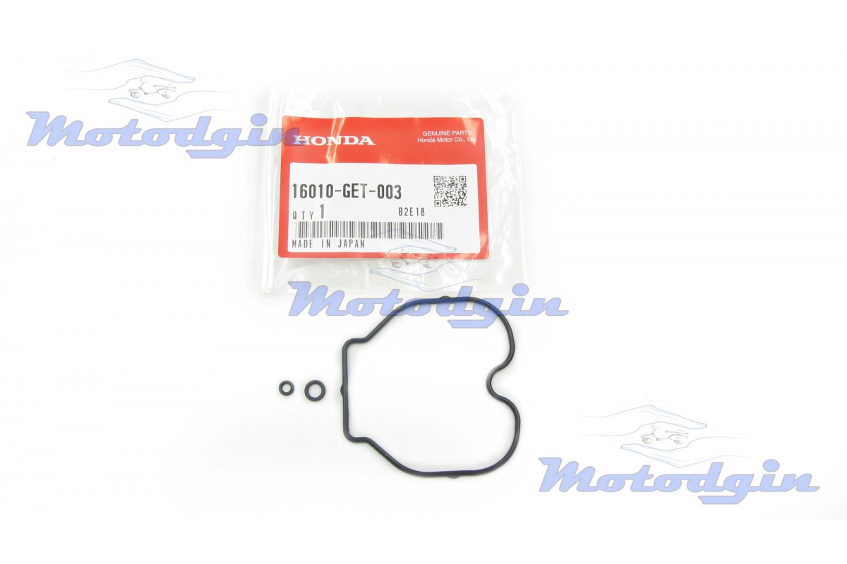 Прокладка поплавковой камери 16010-GET-003 четырехтактного скутера Honda Dio AF56 ( хонда дио аф 56 ) Комплект оригинальных прокладок карбюратора включает три уплотнительных кольца, высокое качество оригинальных деталей обеспечивает качественную работу карбюратора на протяжении всего срока службы. производитель - Honda