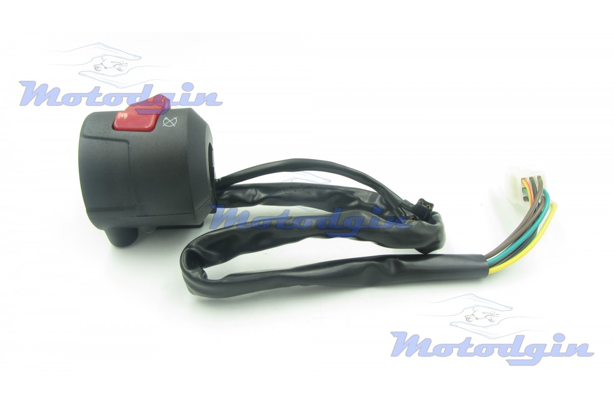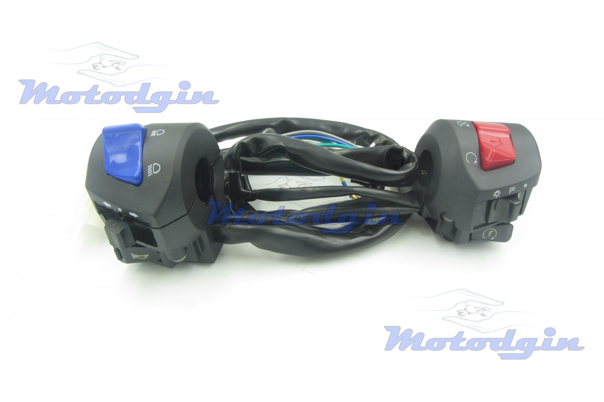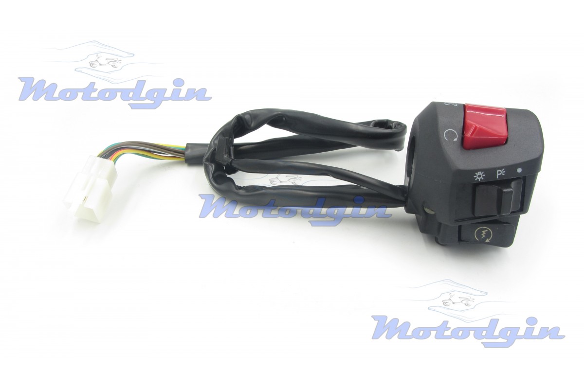 Блок кнопок руля " пульты " CG125 / 150 / 200 ( СЖ 125 ) Блок кнопок поставляется комплектом два штуки, в сборе с проводами. Левый блок без рычага подсоса, выход проводов разъем с внутренними контактами " мама " 9+1 контакт, правый блок выход проводов разъем с наружными контактами " папа " 7+1 контакт, трос газа под резьбу. производитель -MG