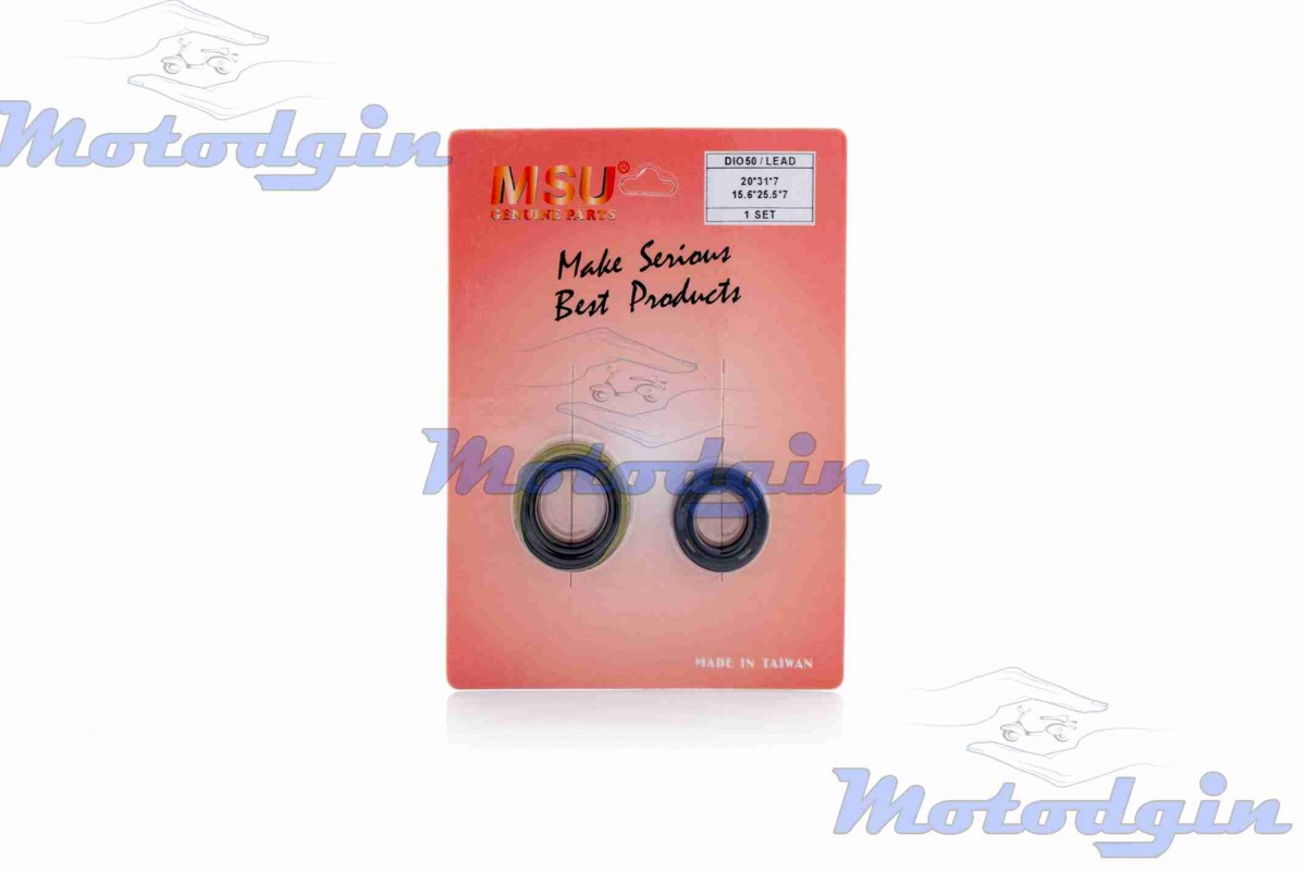 Комплект сальников Honda Dio AF27 / Dio AF34 ( Хонда дио 27, хонда дио 34 ) в наборе два сальника коленчатого вала - 15,6*25,5*7, 20*31*7, изготовлены с качественных материалов в тайвани. производитель MSU Тайвань