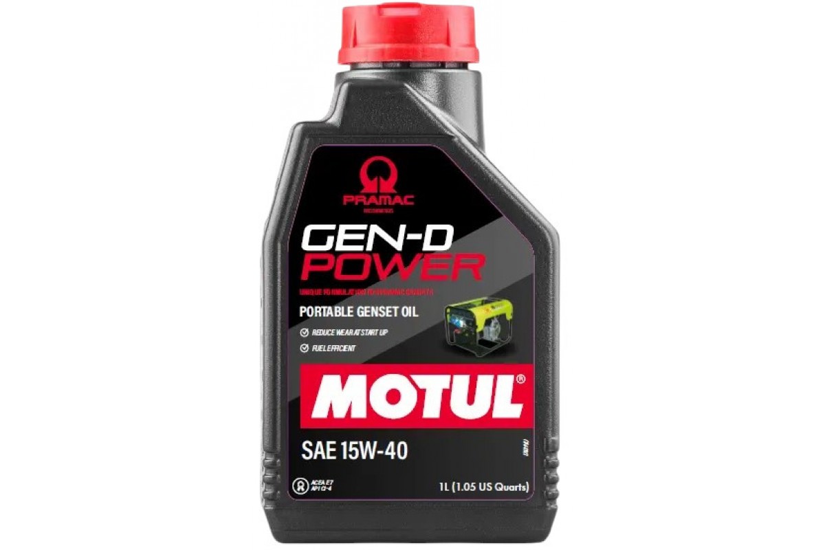 Масло GEN-D POWER SAE 15W40 1L. Предназначено для дизельных генераторов, оснащенных 4-х тактными двигателями, специальная формула GEN-D POWER 15W-40 обеспечивает защиту и продлевает ресурс вашего генератора. Масло Мотюль GEN-D POWER 15W-40 подходит для разных типов дизелей, включая стационарные, атмосферные и с турбонаддувом, с системой рециркуляции отходящих газов (EGR). производитель MOTUL.