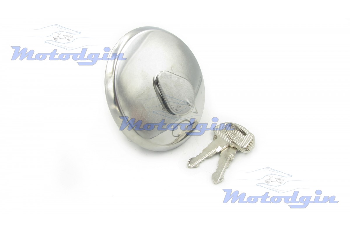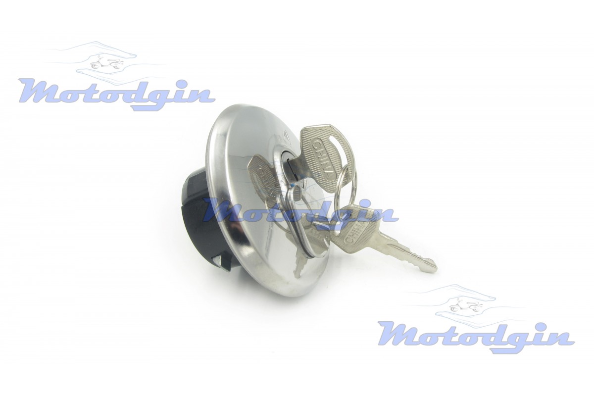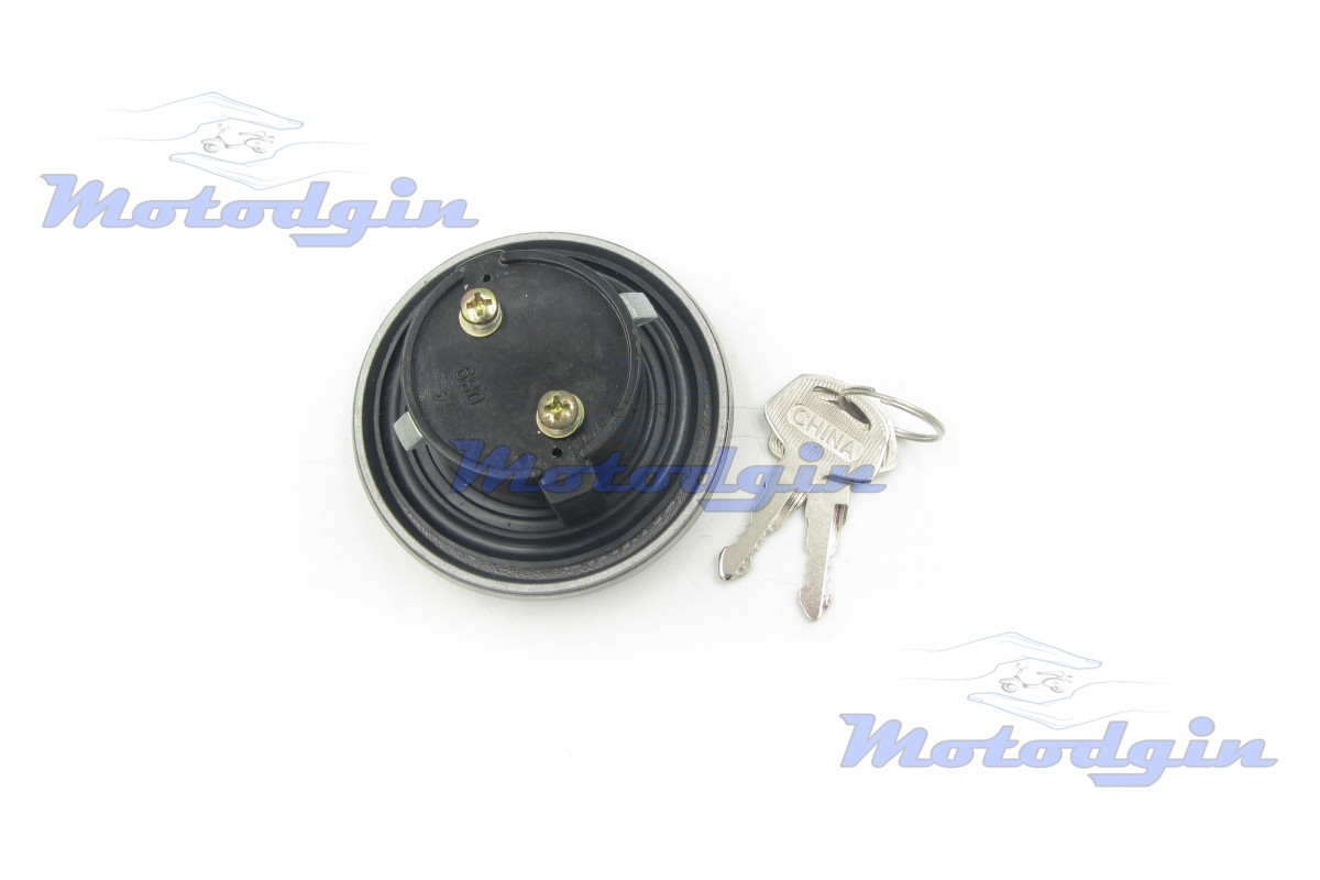 Крышка топливного бака китайского мотоцикла GN125 крышка изготовлена в строгом соответствии с оригиналом. Диаметр крышки 77мм, диаметр уплотнительного кольца наружный 65мм, диаметр отверстия бака минимум 50мм, в комплекте два ключа. производитель - MG