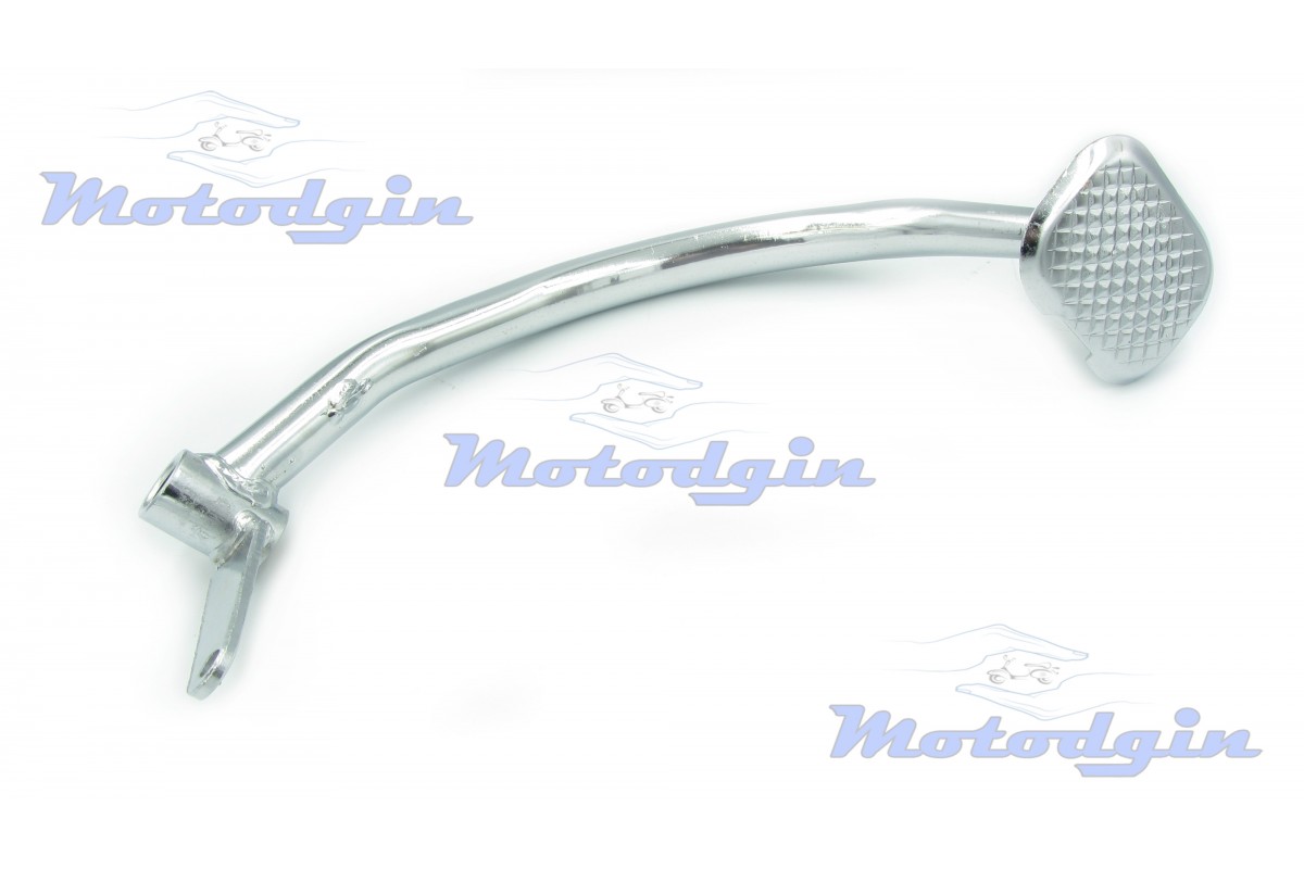 Педаль заднего тормоза CG125, хромированная педаль заднего тормоза китайского мотоцикла выполнена максимально приближенно к оригиналу. Педаль с площадкой под ногу 85х61мм, высота уха тормозной тягши 70мм, внутренний диаметр под ось крепления 17мм, ширина втулки 38мм. Педаль совместима с моделями CG125 / ZJ125 / XF125, и другими мотоциклами на их базе. производитель - MG