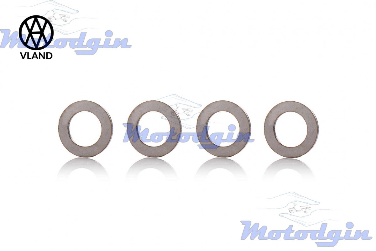 Шайбы для тюнинга переднего вариатора японского скутера Honda Dio Af27/34 ( хонда дио аф 27, хонда дио аф 34 ) в комплекте четыре шайбы, две 0.5мм, две 1.0мм, диаметр шайбы 20мм, внутренний диаметр 14.5мм. Данный комплект позволяет настроить расстояние неподвижной щеки по отношению к вариатору. производитель- MG